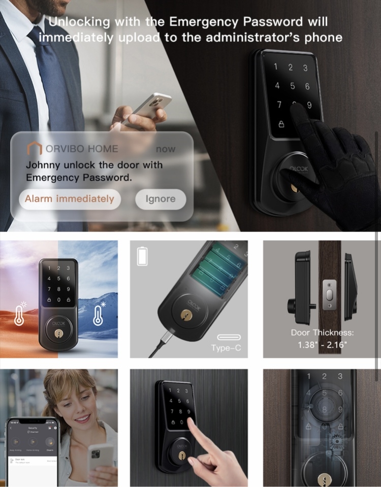 - ORVIBO El bloqueo inteligente OLOCK cuenta con múltiples métodos de desbloqueo: entrada de código, teclas mecánicas de respaldo y códigos remotos. Con códigos permanentes para ti y toda tu familia y acceso temporal para visitantes, como tus amigos y personal de servicio de limpieza.